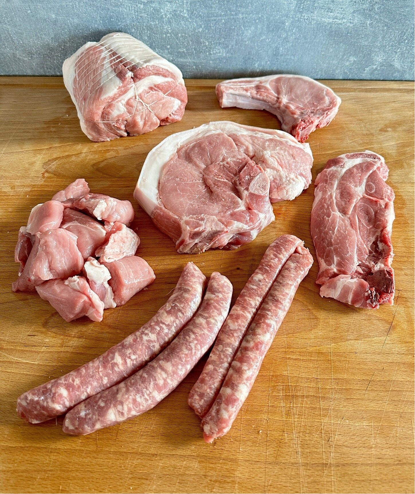 Avec l'aide d'un boucher local, nous préparons une multitude de découpes et de préparations de Porc, orientées vers des éléments de consommation régulière, et toujours à un prix abordable. Exemple : Chipolatas, Rôtis, Côtes de Porc...